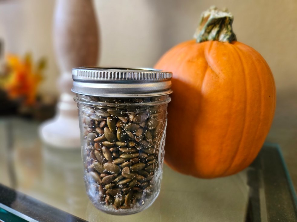 Pepita seeds are very nutritious! Pepita seeds are also pumpkin and squash seeds. Their name means little nuggets or little seeds in Spanish. They come from a specific shell-less or hulless thinner-skinned variety. They are just as healthy or actually healthier when they are roasted verses raw and much easier to digest. If you have any kind of gut issues and you want the nutrition of pumpkin seeds, roasted pepitas are the way to go! Many store bought roasted pepita seeds contain very unhealthy oils. This is why I like to make my own with avocado oil. These seeds provide a lot of nutritional value. Look at the list below. They are higher in calories, so you may want to limit them to about a handful a day.
